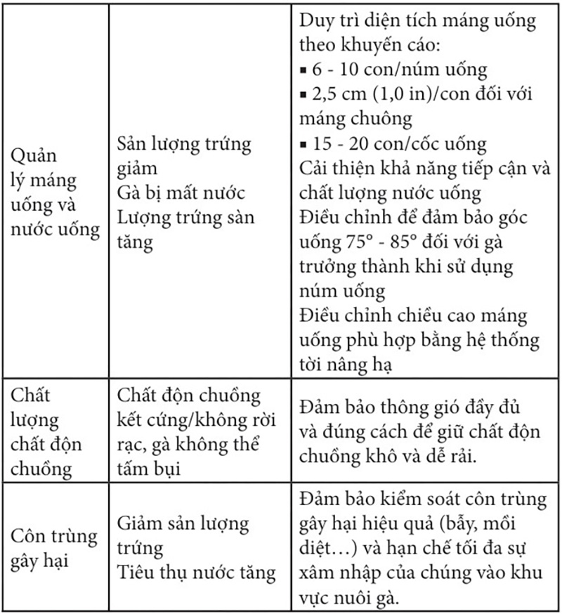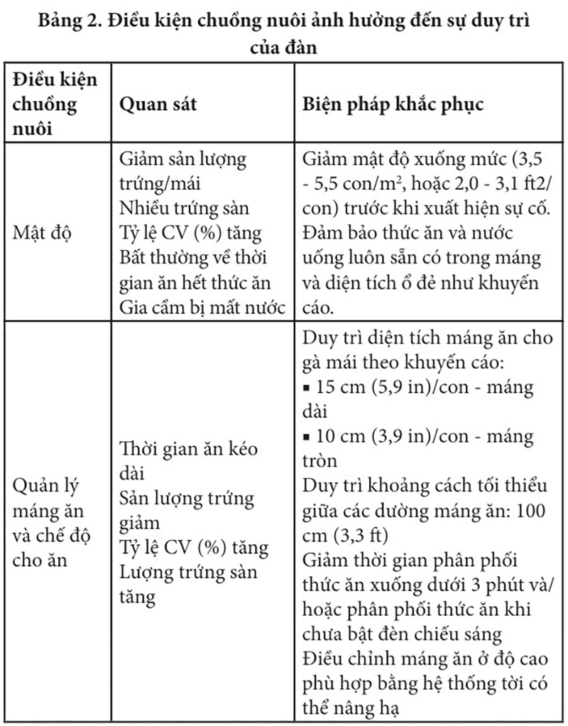 Các yếu tố trong chuồng nuôi có thể gây mất sự duy trì năng suất của đàn. Những yếu tố quan trọng hơn được liệt kê trong Bảng 2.